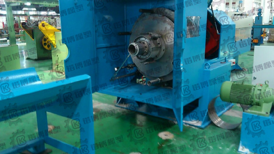 设备主要由:φ2500端轴式放线架、放带盘、放带架、存带架、排带架、倒带机、KBKZ.3-125铠装主机、防护罩、TQD-1250kg履带牵引机、φ2500端轴式收排线架、电气控制柜、操作系统等部分组成。